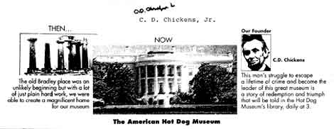 And now Haydenville is destined to become even more famous as the home of the only Hot Dog Museum in all of America! We have learned much about the Whose and we are confident they would have enthused their approval! And why not? This museum is a veritable jewelbox -- bulging with thousands of fascinating and historically significant hot dog artifacts from every part of this great country!!!