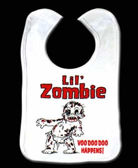 Ha! This bib has a cute Lil' Zombie character on it, complete with